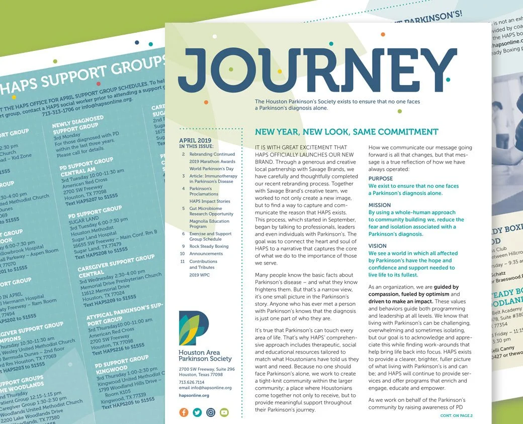 The renamed newsletter, JOURNEY, symbolizes the ongoing path of those living with Parkinson’s and HAPS’s commitment to walking beside them every step of the way.